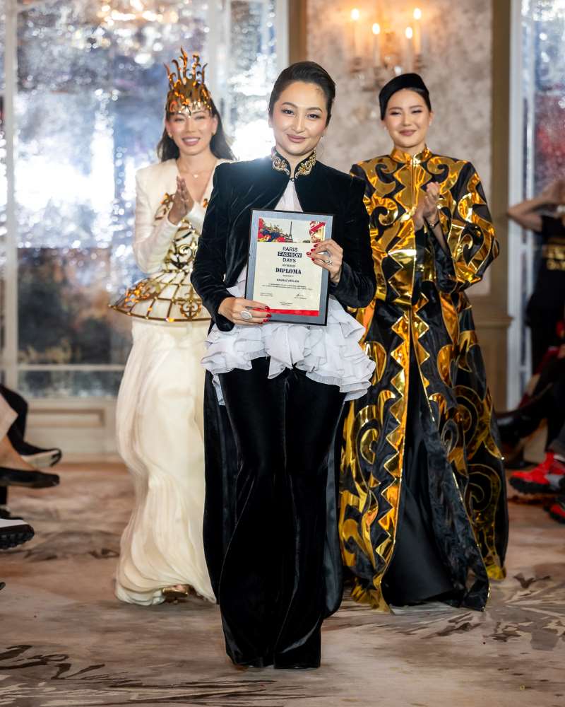 ARUNAZ ATELIER, founded by Nazym Karpikova, presented a collection that beautifully blended contemporary fashion with rich Eastern heritage. Flowing silhouettes, airy fabrics, and intricate detailing created a sense of effortless grace, earning admiration from both the audience and industry professionals. True to the brand’s signature aesthetic, each look carried an aura of elegance and cultural pride — reaffirming ARUNAZ as one of Kazakhstan’s leading voices in modern couture.