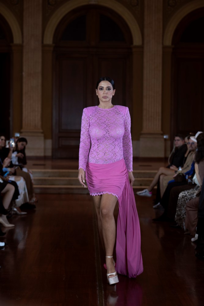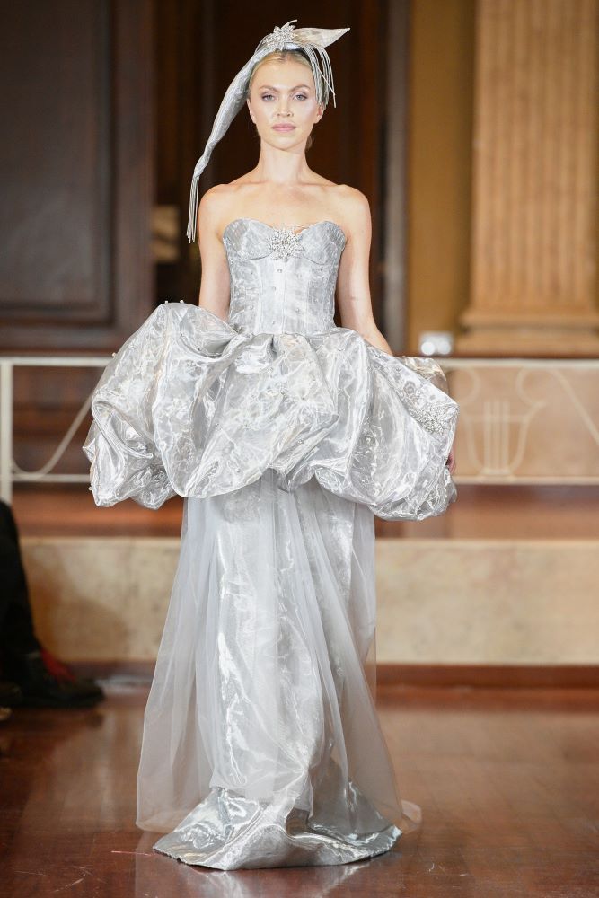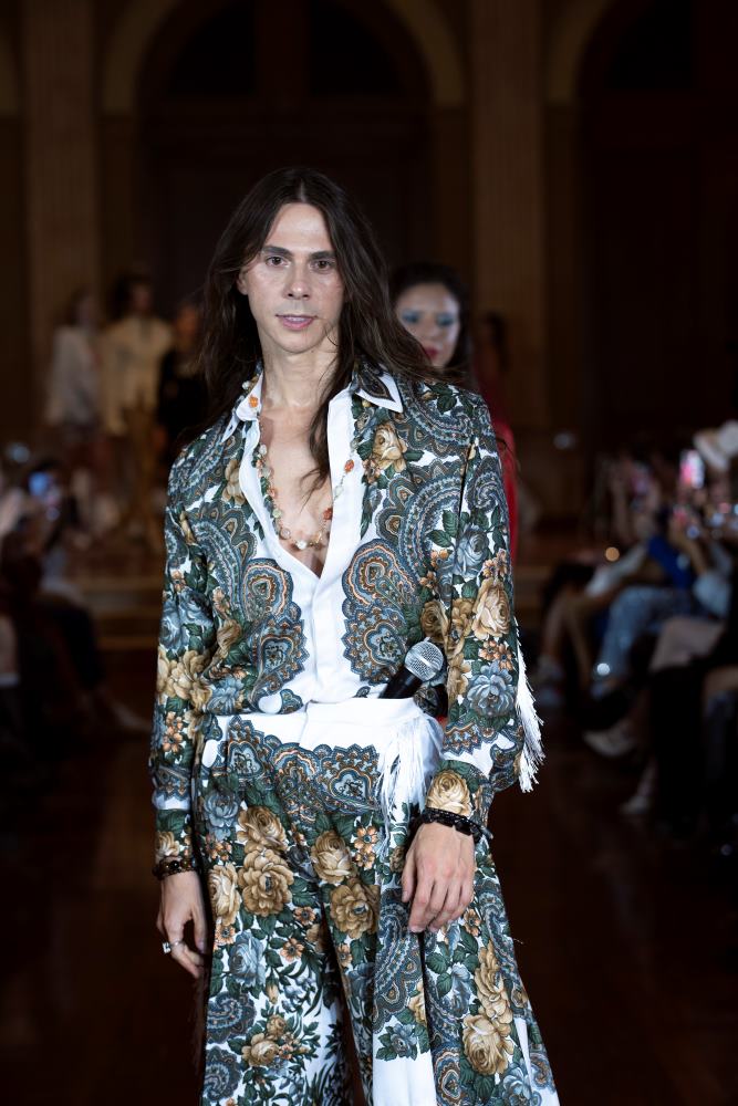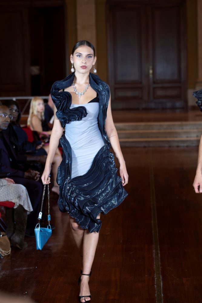 Designer Wladimir Davidii Arutti presented three signature looks from ARUTTI as a live performance. Founded in 2016 by brothers Wladimir Davidii and Georg Arutti, the brand redefines contemporary luxury by seamlessly merging haute couture with high-end prêt-à-porter. Known for its architectural precision and modern artistry, ARUTTI balances wearability with avant-garde refinement — offering pieces that are as sculptural as they are sophisticated.