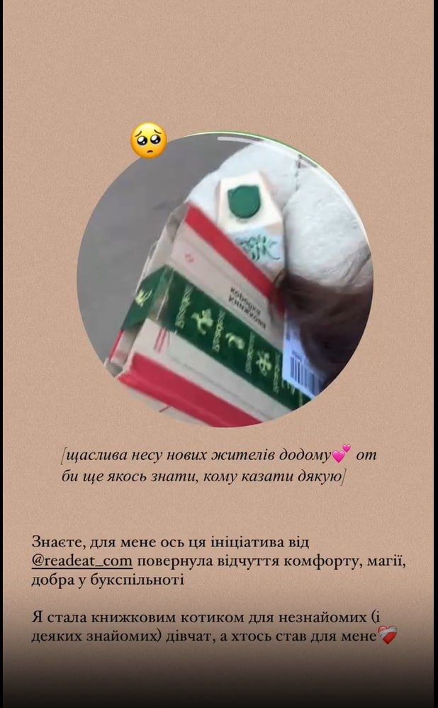 Кожен з нас має силу змінювати майбутнє дітей через книги. А ще – це неймовірне відчуття, коли знаєш, що десь у Чернігові чи Ніжині маленький читач отримав омріяну книжку завдяки тобі», – зазначив засновник мережі книгарень Readeat Дмитро Феліксов.