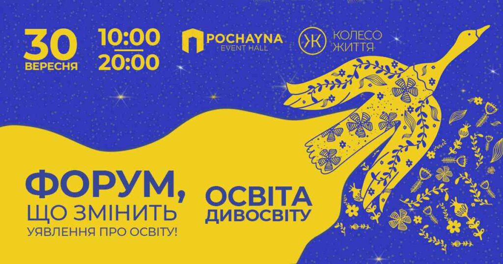 30 вересня у Києві пройде Форум «Освіта Дивосвіту», що збере на одному майданчику таких відомих експертів як Андрій Зелінський, Володимир Співаковський, Ігор Козловський, Юлія Найдич, Олег Хомяк, Лариса Андрійченко, Сергій Собко, Ксенія Фощій, Володимир Нікітін, Георгій Коваленко та інші. Головна тема обговорення — необхідні трансформації освіти для виховання гідної та вільної особистості, яка вміє “запалювати зорі”, є воїном і дослідником. Початок події о 10.00, за адресою Pochayna Event Hall, просп. С. Бандери, 23, 3-й поверх.